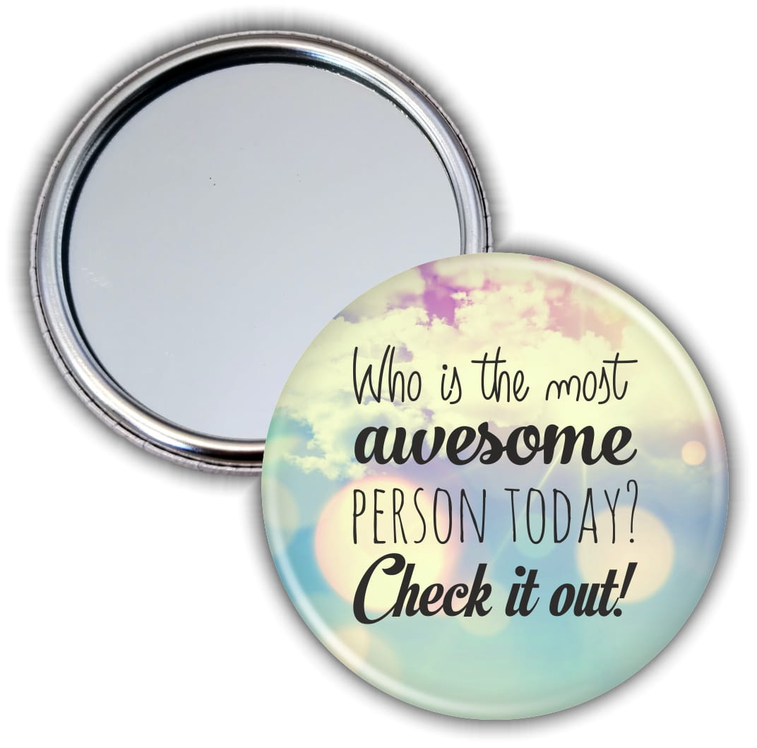 Niewielkich rozmiarów kieszonkowe lusterko z nadrukiem - idealny prezent dla kobiety małej i dużej.