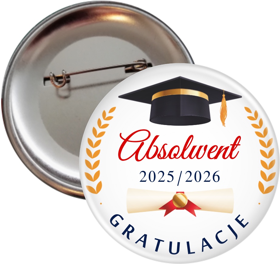Klasyczna przypinka Absolwenta - 37mm - SZYBKA WYSYŁKA