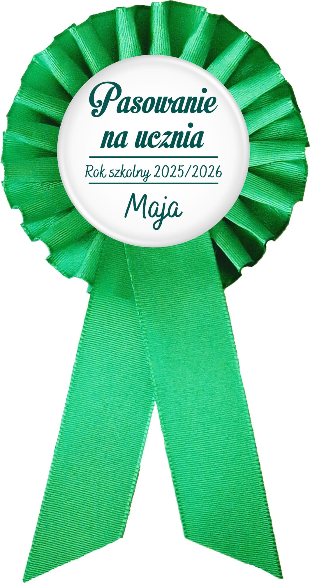 Imienny kotylion na pasowanie na ucznia - kolor jasnozielony