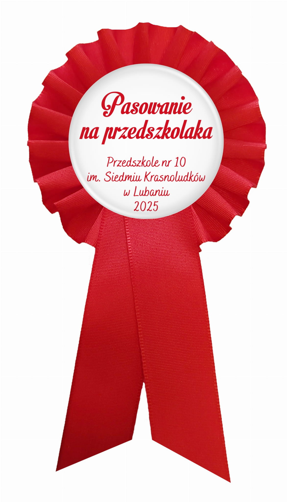Pasowanie na Przedszkolaka - czerwony kotylion z przypinką 56mm