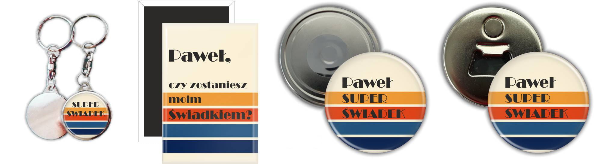 Zmianie ulega jedynie imię przyszłego Świadka. Imię to pojawia się na wszystkich trzech rodzajach magnesów