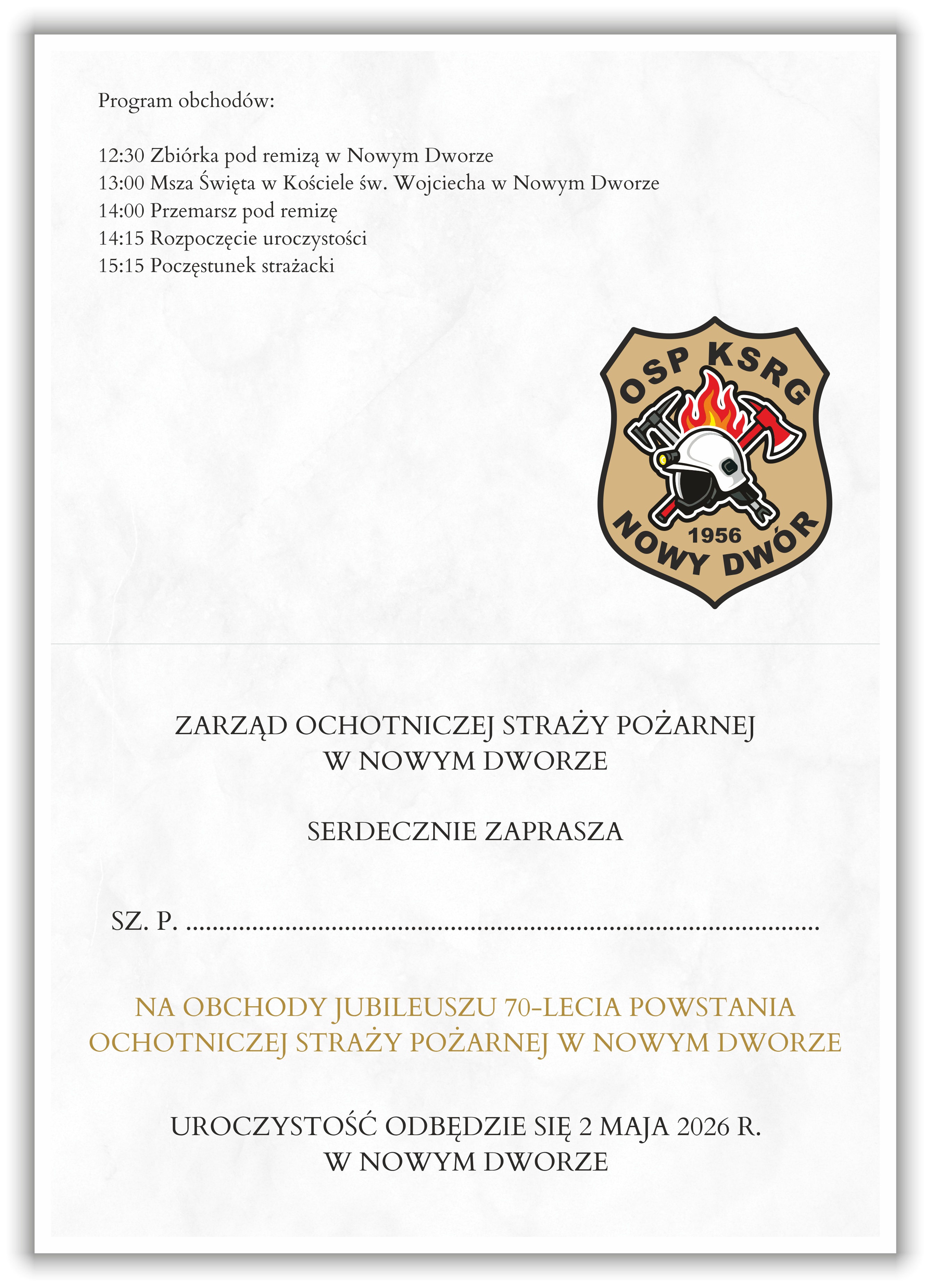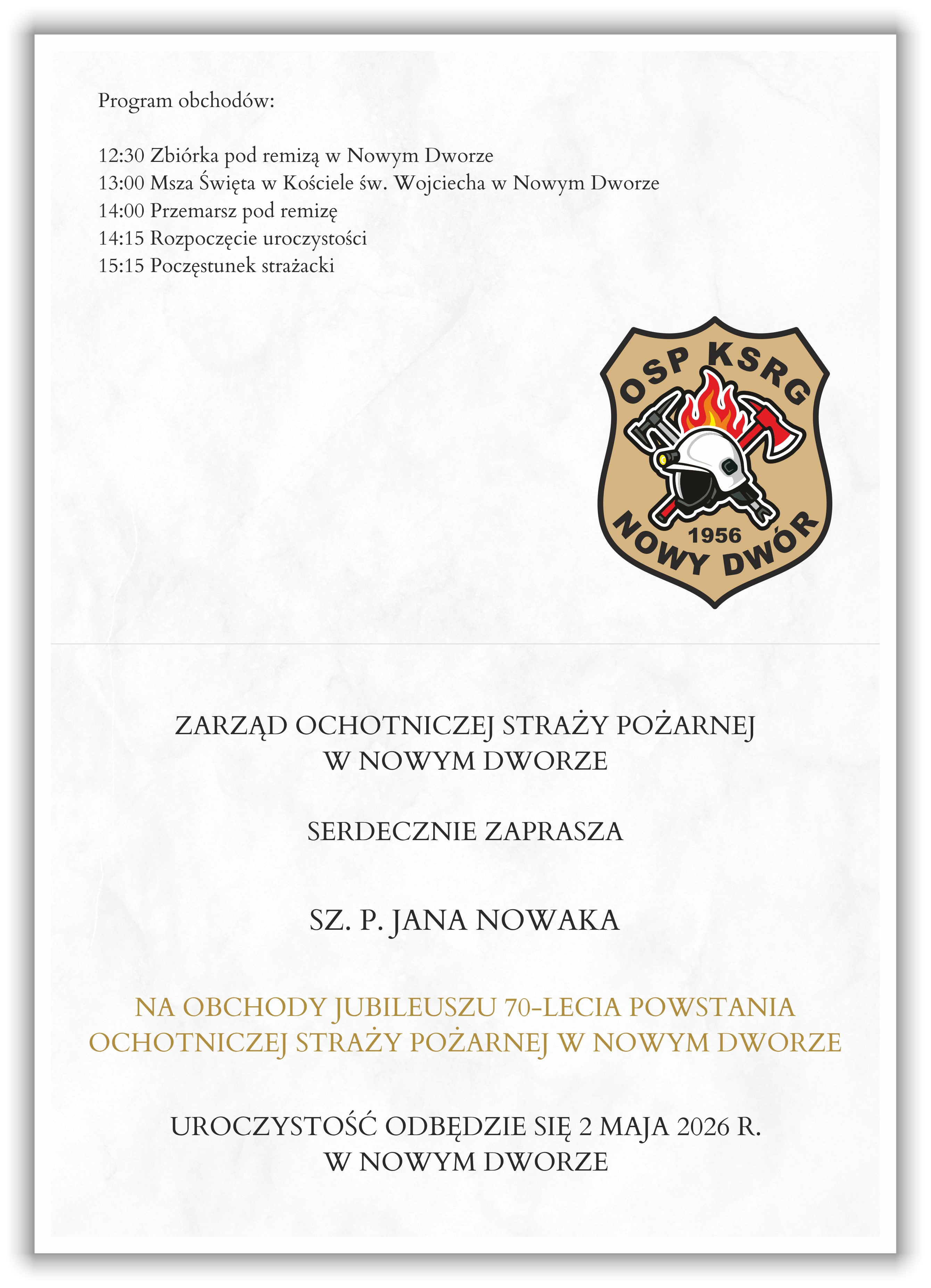 Zaproszenie na Jubileusz powstania OSP – elegancka oprawa wyjątkowej uroczystości